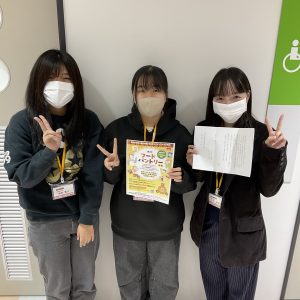 11月30日に済生会富山病院でフードパントリーが行われ 当校の学生も参加しました! 参加者 安村 凜音那 須加 葉月 坂 萌々香