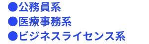 ●公務員系 ●医療事務系 ●ビジネスライセンス系